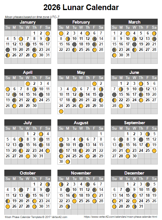 *The dates and times for the moon phases listed in these spreadsheets come from the U.S. Naval Observatory website and are listed in UTC time. The templates allow you to choose a UTC offset to display the phases in a time zone closer to you (the default is UTC-7).