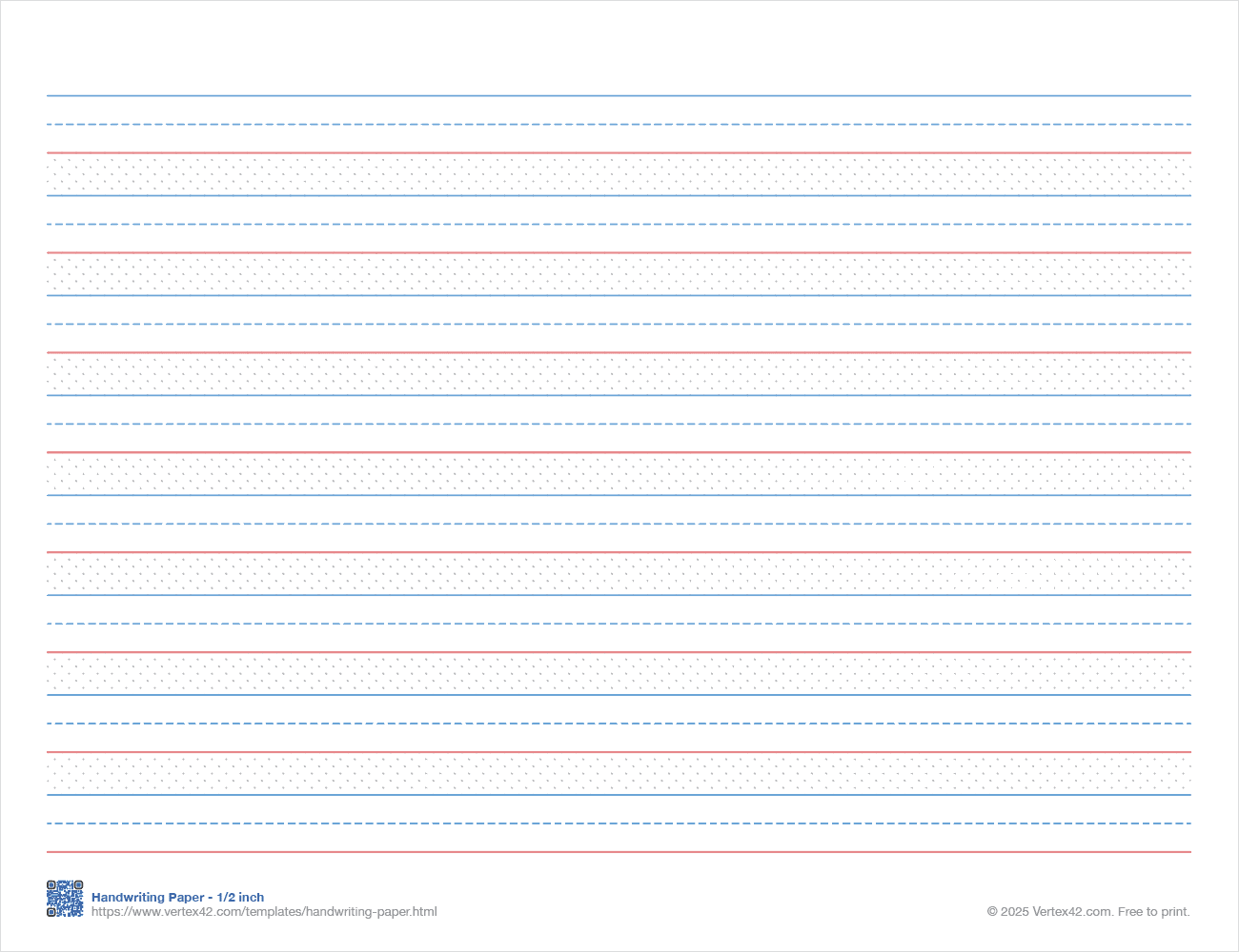 This size is great for building confidence and bridging the gap between beginner handwriting and standard ruled paper. After students can form letters consistently on larger lines, this smaller 1/2 inch row paper encourages tighter control and smoother writing movements.