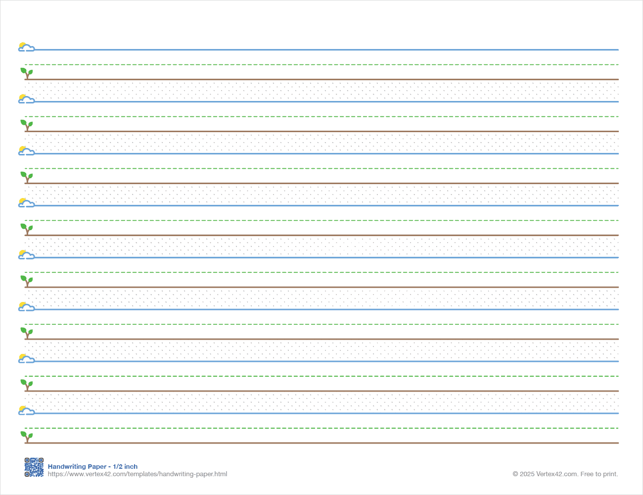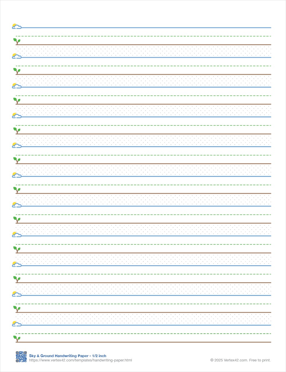 1/2" Sky & Ground Lines - Handwriting Worksheets